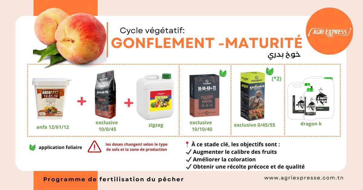 Appliquer 3 à 4 fois tous les 20 jours à partir de la nouaison (formation du fruit).